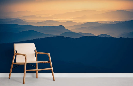 Serene Blue Mountain Sunrise Mural Wallpaper