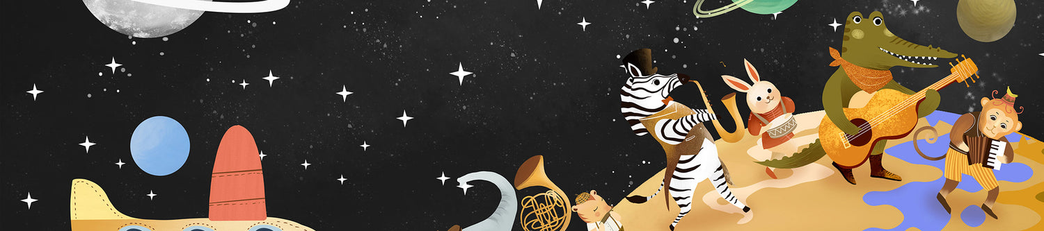 Whimsical Animal Musicians Blue Mural Wallpaper