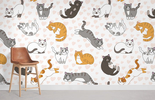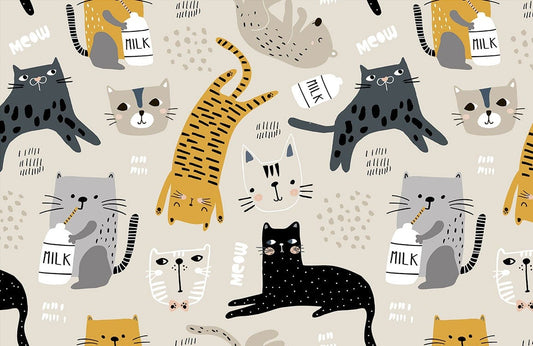 Whimsical Cat Illustration Kids Mural Wallpaper
