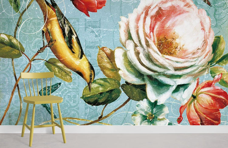 Vintage Floral Butterfly Garden Mural Wallpaper