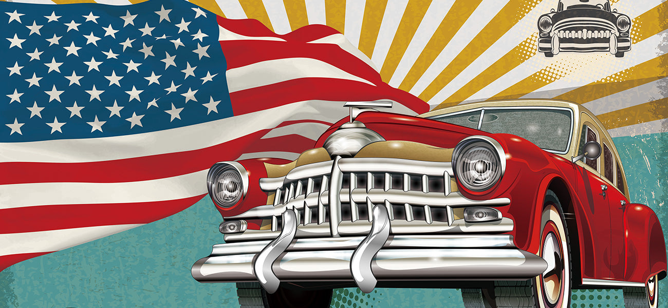 Retro American Flag Vintage Car Mural Wallpaper