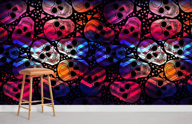 Colorful Geometric Skulls Mural Wallpaper