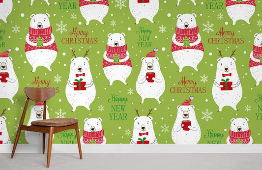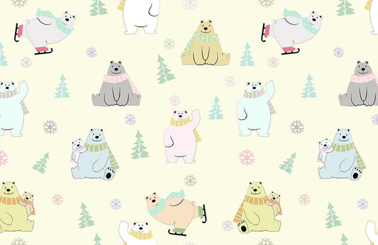 Whimsical Winter Sports Pattern Mural Wallpaper