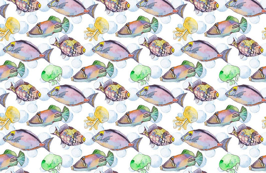 Colorful Hand-Drawn Fish Mural Wallpaper