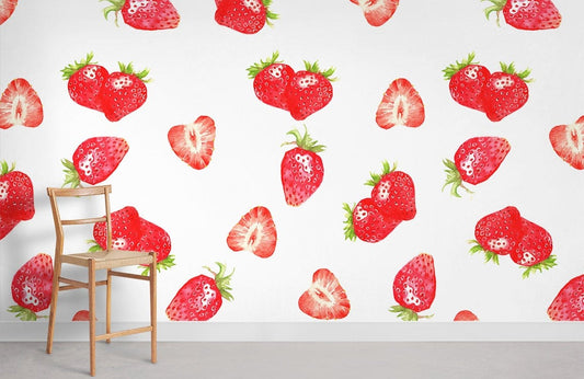 Red Whimsical Strawberry Pattern Mural Wallpaper