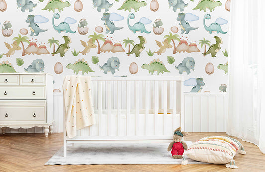 Cute Dinosaur Cartoon Kids Wallpaper Mural