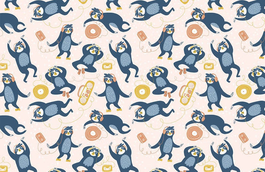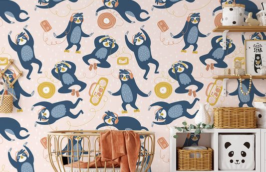 Soothing Nursery Sloth Moon Mural Wallpaper