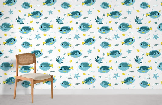 Whimsical Dog Pattern Kids Mural Wallpaper