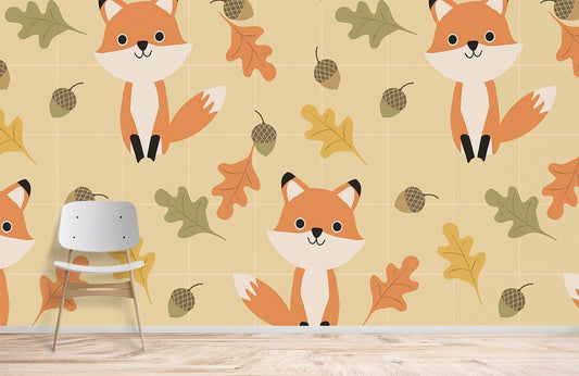 Whimsical Woodland Animal Pattern Mural Wallpaper
