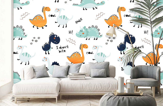 Cute Dinosaur Cartoon Kids Mural Wallpaper