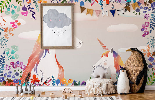 Whimsical Swan Cloud Nursery Mural Wallpaper
