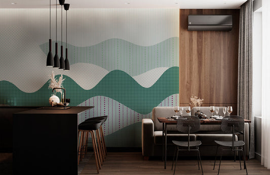 Abstrakte Wellen Geometrische Grüne Wandtapete