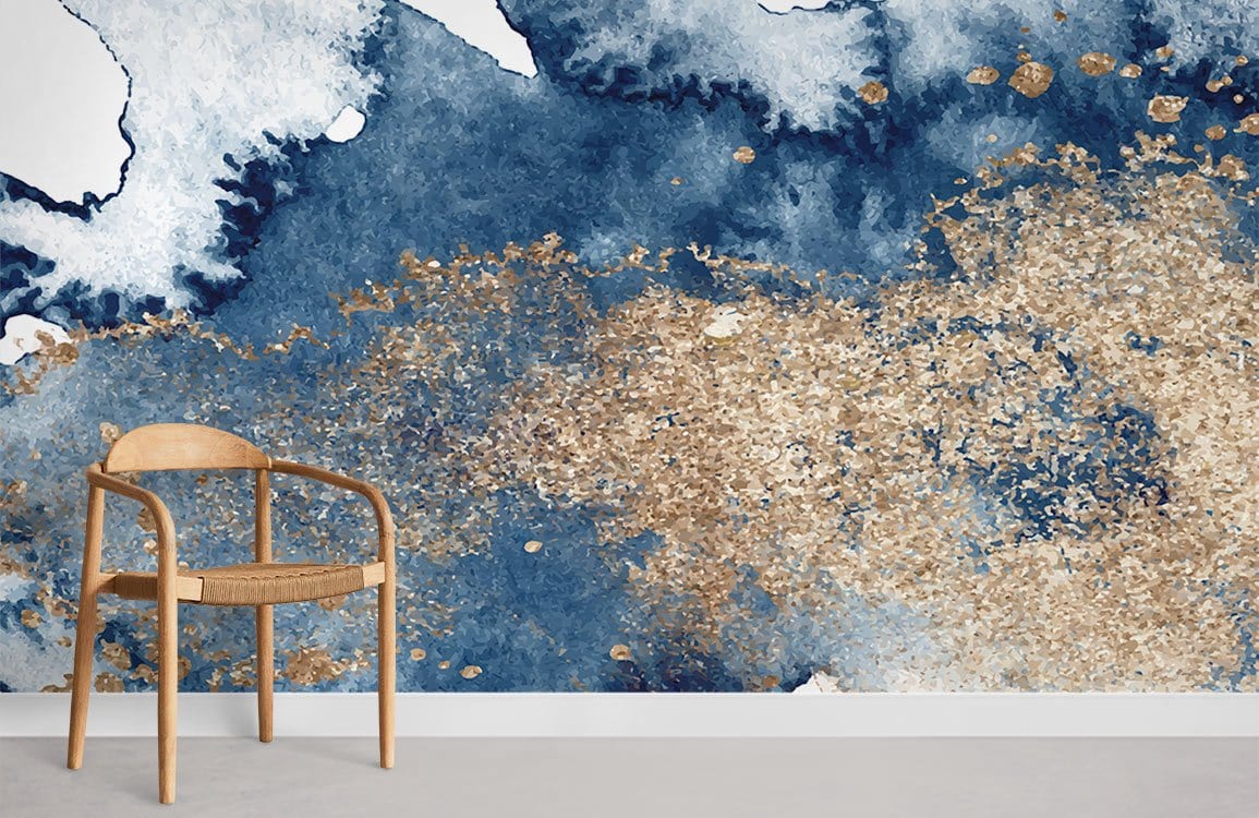Marineblau Gold Aquarell Abstrakte Wandtapete