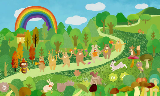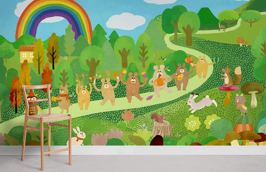 Bunte verspielte Waldtier-Murales Wallpaper