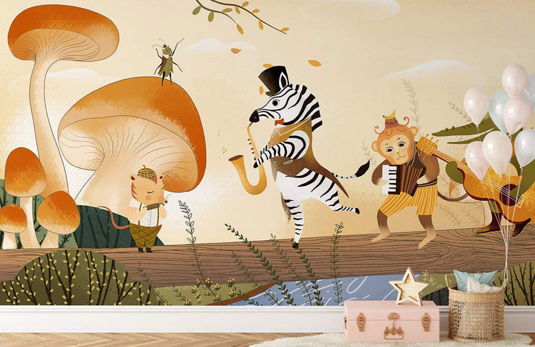 Niedliches Cartoon-Tier-Spektakel Wandbild