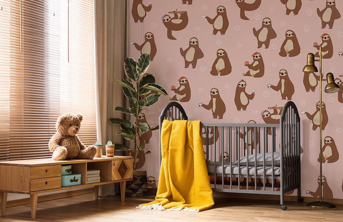 Verschönern Sie das Kinderzimmer mit diesem charmanten rosa Wallpaper, das eine entzückende Vielzahl von verspielten Faultieren zeigt. Perfekt, um eine warme und verspielte Umgebung für Ihr Kleines zu schaffen, bringt dieses Wallpaper einen Hauch von Spaß in jedes Kinderzimmer.