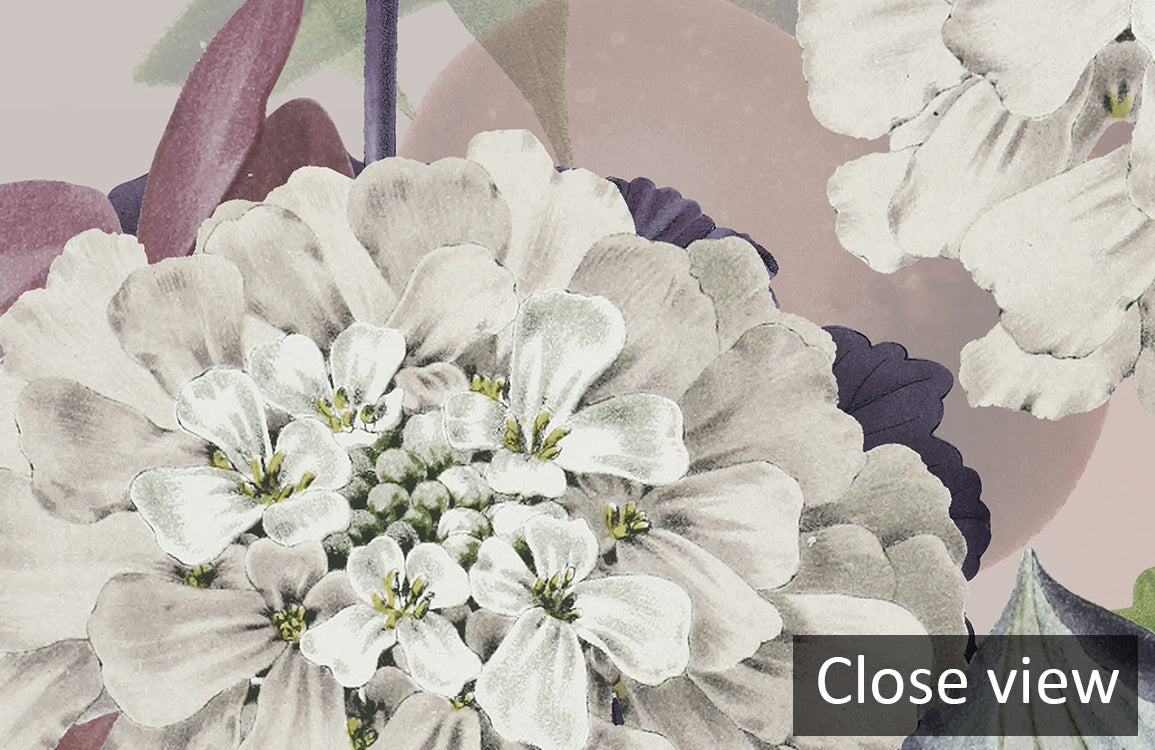 Verwandeln Sie Ihren Raum mit unserem Elegant Botanical Garden Floral Wallpaper, das eine üppige Auswahl detaillierter Blumen in sanften, romantischen Farbtönen zeigt. Ideal, um eine einladende Atmosphäre in Schlafzimmern und Wohnräumen zu schaffen.