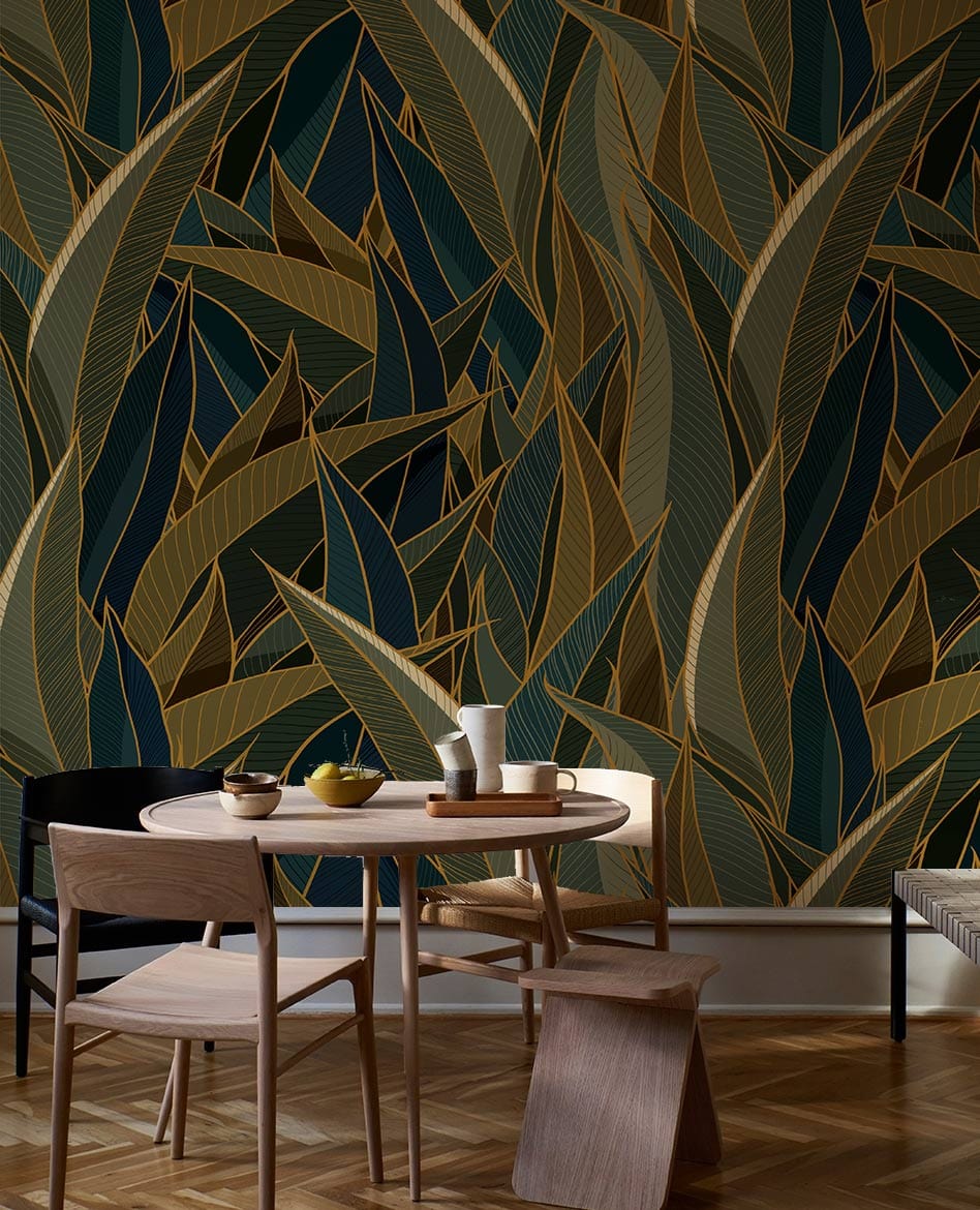 Verwandeln Sie Ihren Raum mit unserem Elegant Gold Leaf Geometric Wallpaper, das mit seinem metallischen Glanz Raffinesse verkörpert. Ideal für die Schaffung eines exquisiten Hintergrunds in Wohnzimmern oder Schlafzimmern, strahlt diese Tapete Luxus und Zeitlosigkeit aus.