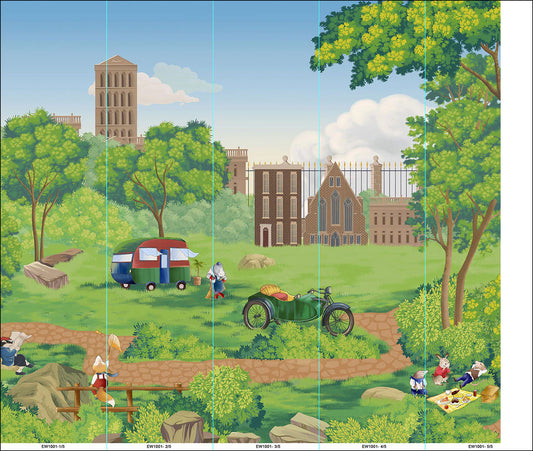 Cut along the dashed lines with a pair of scissors to separate the wallpaper into its constituent strips. In accordance with the correct installation sequence, Strip 1 should be laid down first. The strip number should be aligned with the upper left corner of each strip in order to accurately position the wallpaper mural. From left to right, each strip is consecutively numbered.