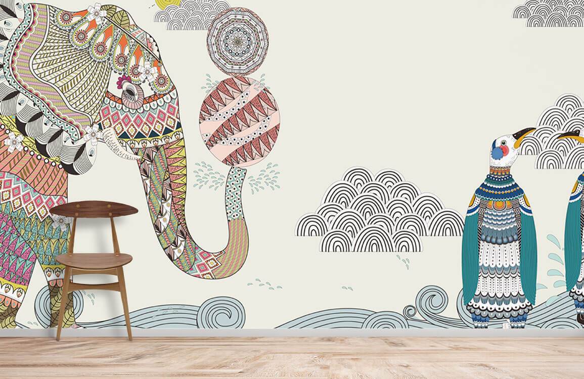 Umarmen Sie lebhaftes Boho-Chic mit unserem Colorful Bohemian Elephant Wallpaper, einer perfekten Mischung aus verspielten Elementen und kräftigen Farben. Diese Tapete verleiht einen künstlerischen Akzent und verwandelt jeden Raum in einen verspielten, aber stilvollen Bereich. Ideal für diejenigen, die einzigartige und ausdrucksstarke Innendesigns lieben.