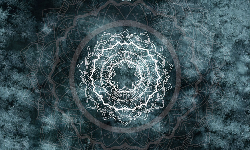 Tauchen Sie in eine ruhige Atmosphäre mit diesem Ethereal Mandala Abstract Wallpaper ein, das ein sanftes Mandala-Muster mit einem mystischen Türkis- und Marinehintergrund verbindet. Perfekt, um einen meditativen Raum in Ihrem Zuhause zu schaffen.