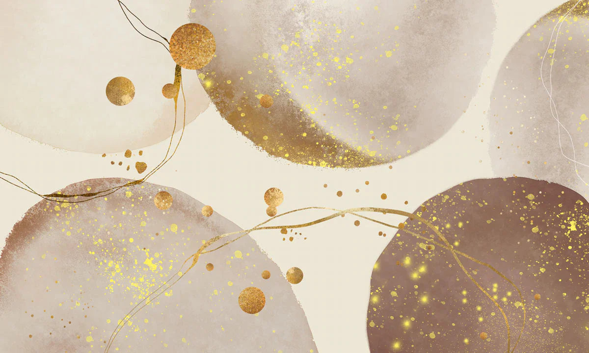 Erheben Sie Innenräume mit unserem Gold Speckled Abstract Circular Design Wallpaper, das eine luxuriöse Atmosphäre in jedem Raum schafft. Perfekt geeignet, um einen Hauch von Raffinesse und Schimmer hinzuzufügen, vereinen der sanfte beigefarbene Hintergrund und die glitzernden goldenen Akzente modernen Stil mit zeitloser Eleganz.