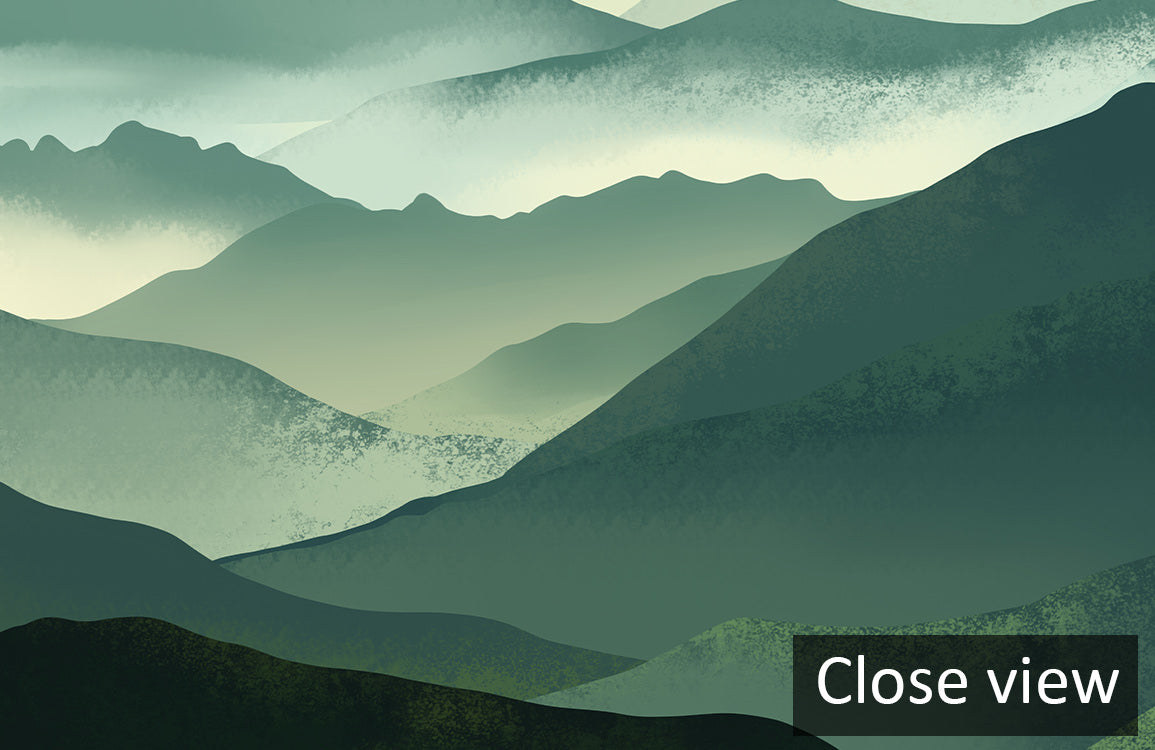 Erwecken Sie ein Gefühl der Ruhe mit unserem atemberaubenden Misty Mountain Range Wallpaper. Ideal für die Schaffung eines friedlichen Zufluchtsorts bringt dieses Wallpaper die ruhige Schönheit einer nebligen Berglandschaft in Ihr Zuhause und bereichert jeden Raum mit seinen beruhigenden Schichten.
