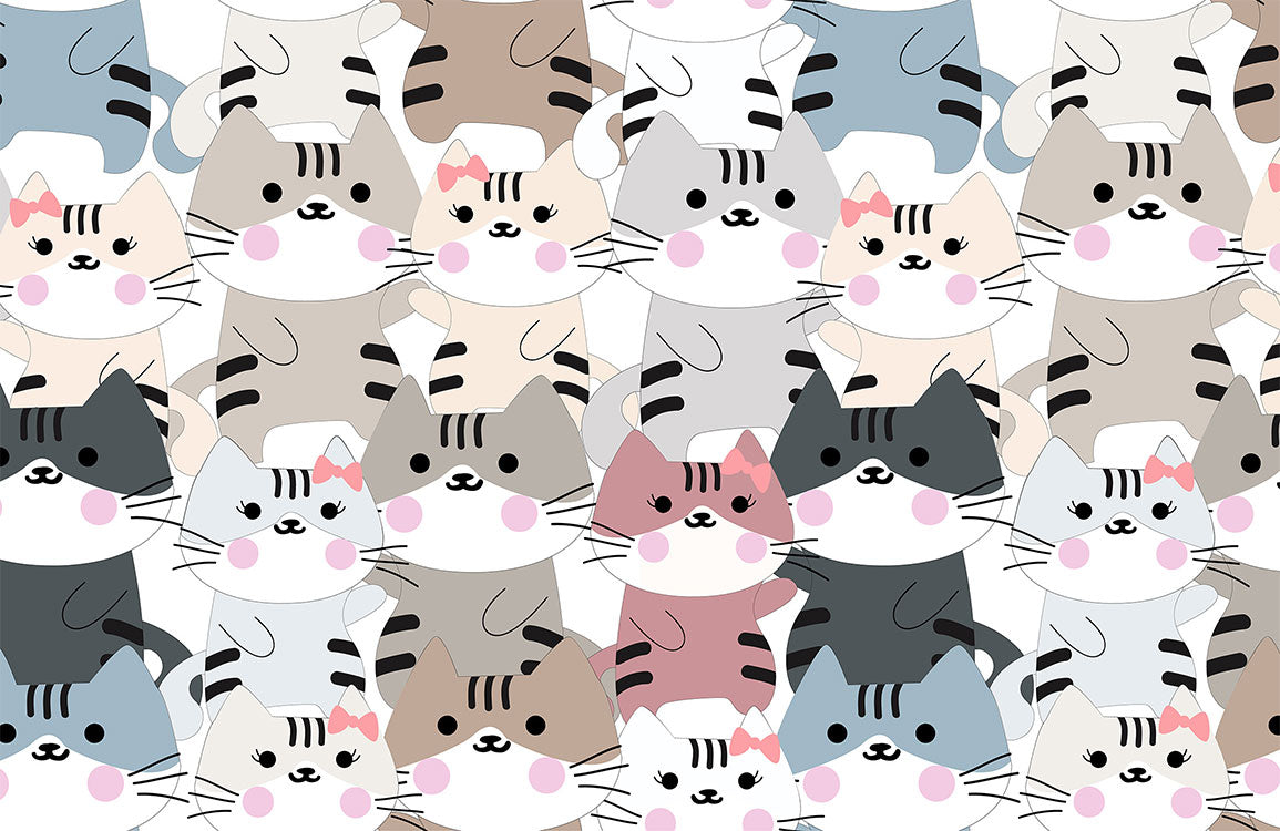 Umarmt die Verspieltigkeit eures Raums mit unserer Cute Abstract Cat Pattern Wallpaper. Perfekt für Tierliebhaber, fügt dieses skurrile Design jedem Raum eine moderne und gleichzeitig niedliche Note hinzu, mit sanften Farbtönen, die nahtlos mit verschiedenen Dekorationsstilen harmonieren.