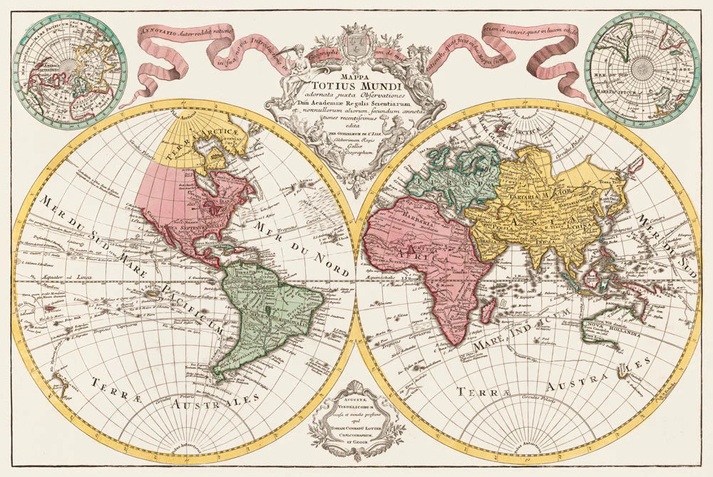 Verwandeln Sie Ihren Raum mit unserem Vintage World Map Wallpaper Mural, einer wunderschön gealterten Karte mit zarten Farbdetaillierungen. Perfekt für die Schaffung einer altmodischen Atmosphäre in jedem Raum, verleiht dieses Design einen Hauch von Raffinesse und historischem Charme.