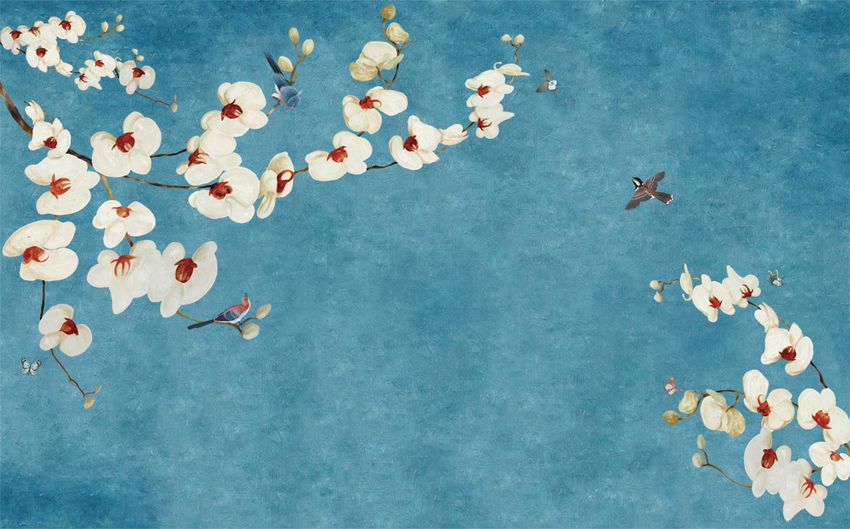 Verwandeln Sie Ihren Raum mit diesem Elegant Blue Floral Watercolor Wallpaper, das zarte weiße Blüten und subtile Schmetterlinge zeigt. Der beruhigende blaue Hintergrund schafft eine friedliche Atmosphäre, die ideal für Schlafzimmer, Wohnräume oder Toiletten ist.
