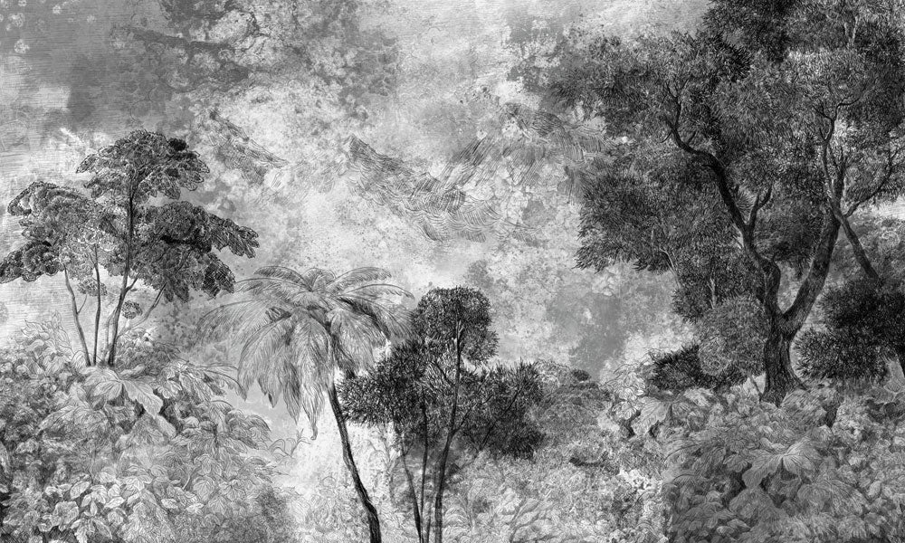 Tauchen Sie Ihren Raum in die ruhige Schönheit der Natur mit diesem Monochrome Forest Landscape Wall Mural von Ever Wallpaper ein. Perfekt für die Schaffung einer ruhigen Atmosphäre, zeigt dieses Wallpaper eine detailreiche Darstellung einer üppigen Waldszene in wunderschönen Schwarz-Weiß-Tönen und ist damit eine ideale Wahl für moderne und rustikale Einrichtungsstile.