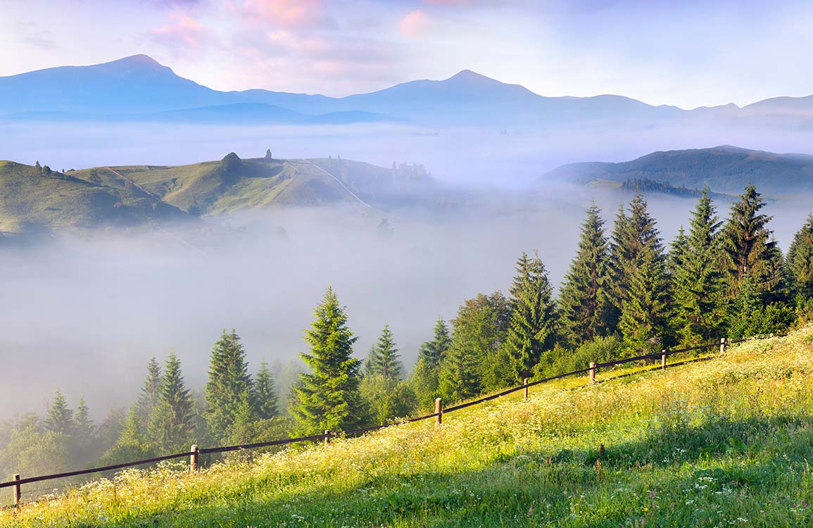 Verwandeln Sie Ihren Raum mit unserem Misty Mountain Landscape Wall Mural. Die ruhige Naturszenerie schafft einen beruhigenden Hintergrund, ideal für ein friedliches Schlafzimmer oder eine entspannende Büroumgebung. Die sanfte Mischung aus Blau und Grün mit sanften nebligen Elementen wird jede Atmosphäre beruhigen.