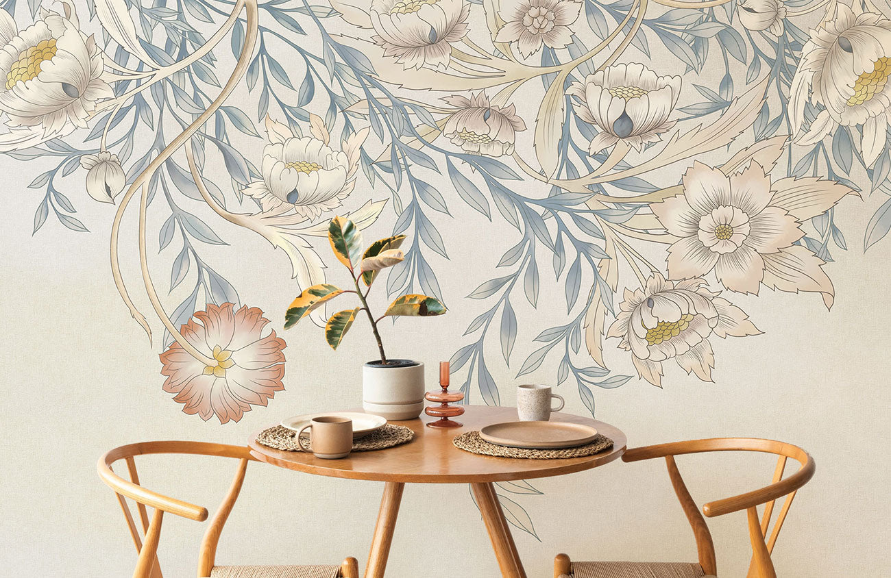Verwandeln Sie Ihren Raum mit unserem Elegant Botanical Garden Floral Wallpaper, das eine zarte Mischung aus blühenden Blumen und sanften Blättern bietet. Perfekt, um eine ruhige Atmosphäre in jedem Raum zu schaffen, verleiht die subtile Farbpalette einen Hauch von Raffinesse.
