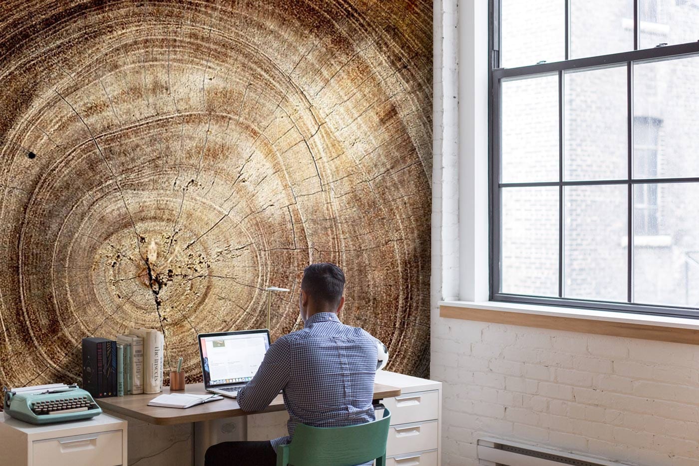 Verwandeln Sie Ihren Arbeitsplatz mit unserem Rustic Tree Ring Office Wallpaper. Dieses einzigartige Design ahmt den Querschnitt eines hohen Baumes nach und verleiht jedem Raum eine organische Note. Perfekt für die Schaffung einer beruhigenden, naturinspirierten Umgebung, die Konzentration und Produktivität fördert.
