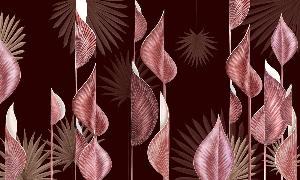 Verwandeln Sie Ihren Raum mit unserer luxuriösen burgunderfarbenen Tapete, die zarte botanische Blattmuster zeigt, die Raffinesse ausstrahlen. Ihre reiche Farbe und ihr Design verleihen jedem Raum Tiefe und ein organisches Gefühl, ideal für die Gestaltung einer Statement-Wand oder einer gemütlichen Atmosphäre.