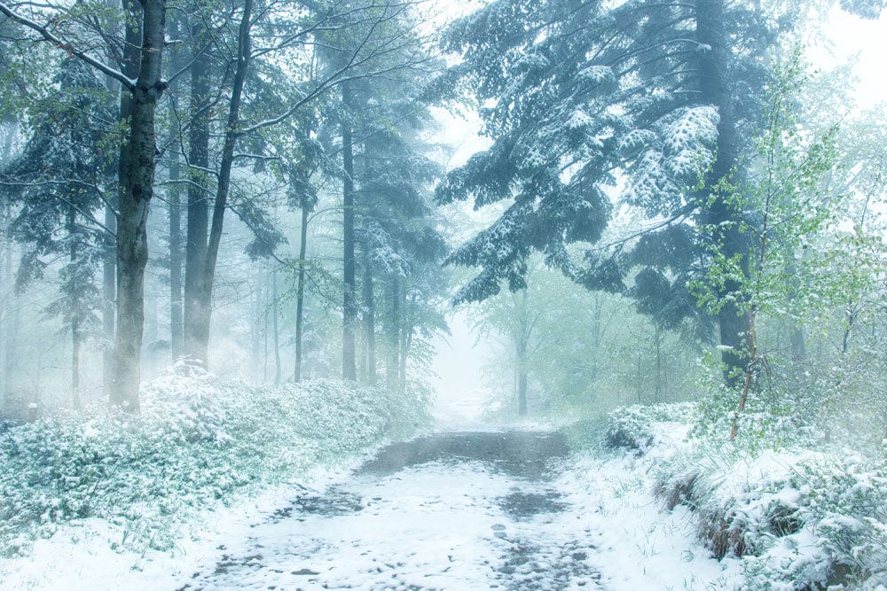 Verwandeln Sie jeden Raum mit diesem bezaubernden Misty Forest Snowy Path Wallpaper, das eine ruhige winterliche Waldszene zeigt, die in Nebel gehüllt ist. Die sanfte Farbpalette strahlt Ruhe aus und ist perfekt, um einen friedlichen Rückzugsort in Ihrem Zuhause zu schaffen.
