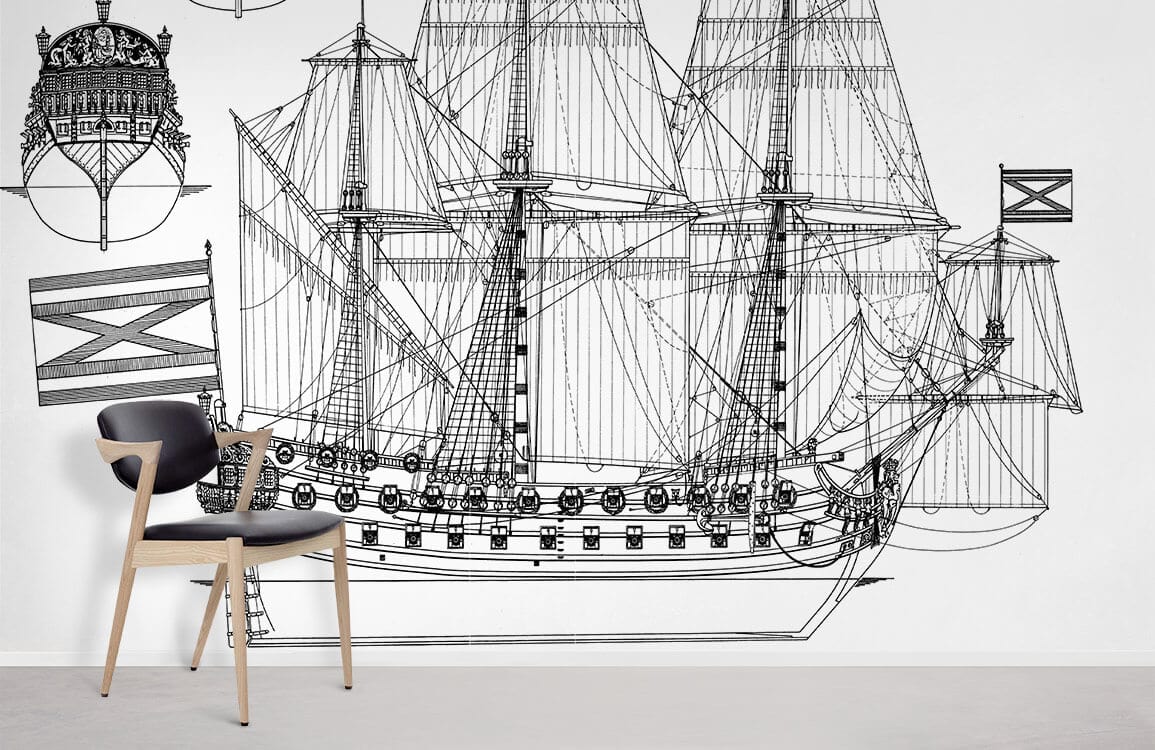 Setzen Sie Segel mit unserem Nautical Ship Sketch Wallpaper. Perfect für das Hinzufügen eines Hauch von maritimem Charme zu Ihren Innenräumen, verfügt dieses monochrome Design über eine klassische Schiffs-Linienzeichnung, die es zu einem zeitlosen Hintergrund für jeden Raum macht.
