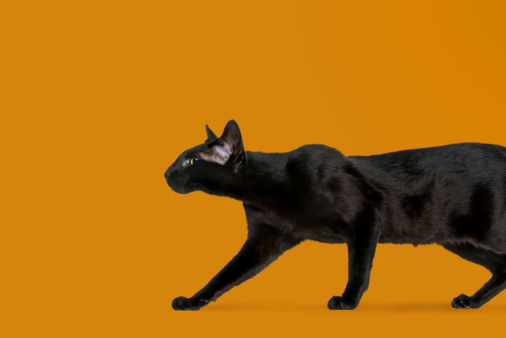 Erheben Sie Ihren Raum mit unserem Modern Black Cat Wallpaper, das elegante Silhouetten auf einem lebhaften orangefarbenen Hintergrund zeigt. Perfekt, um einem Raum eine verspielte Note zu verleihen, ist diese Tapete eine ideale Mischung aus modernem Stil und skurrilem Charme.