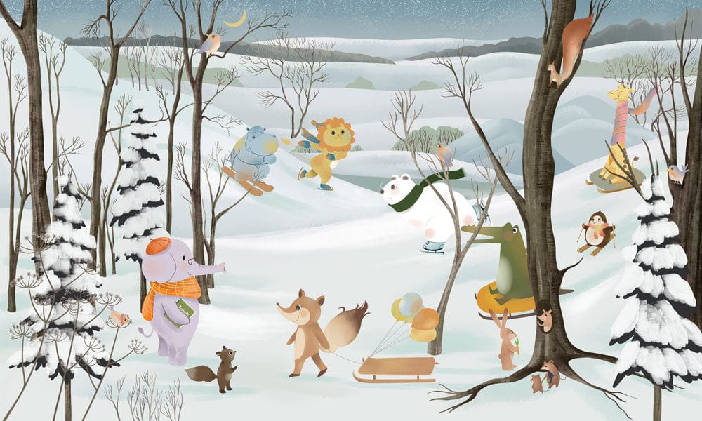 Bringen Sie Freude in das Zimmer Ihres Kindes mit dieser Ever Wallpaper mit verspielten Winterwaldtieren. Mit spielerischen Tieren in einer verschneiten Szene ist es perfekt, um die Fantasie anzuregen. Langlebig und leicht zu reinigen, ist es ideal für Kinderzimmer oder Spielzimmer.