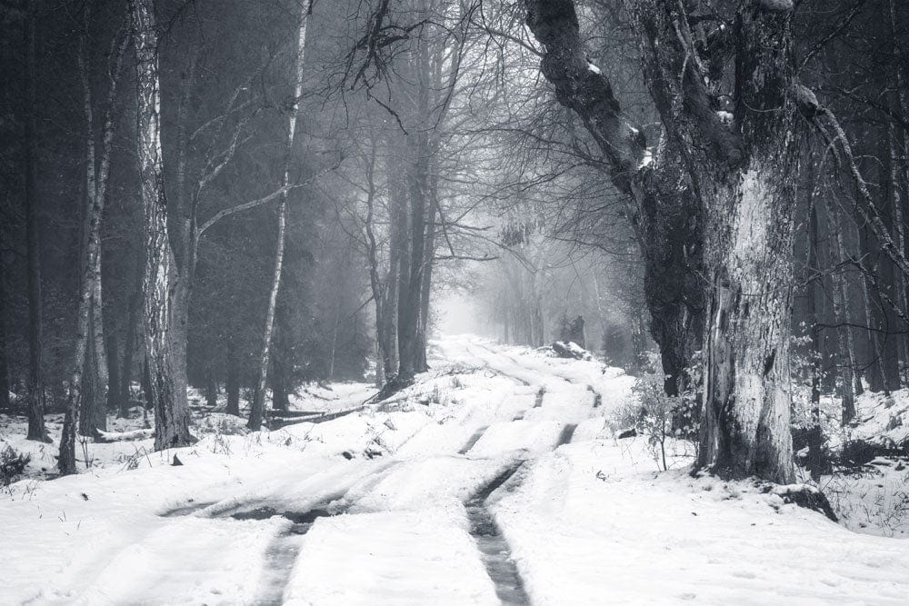 Verwandeln Sie Ihren Raum mit unserem bezaubernden Misty Forest Snow Path Wallpaper, das eine ruhige monochrome Landschaft zeigt, die Ruhe ausstrahlt. Perfekt, um eine beruhigende Atmosphäre in jedem Raum zu schaffen, ist diese Tapete eine Mischung aus Natur und Eleganz.