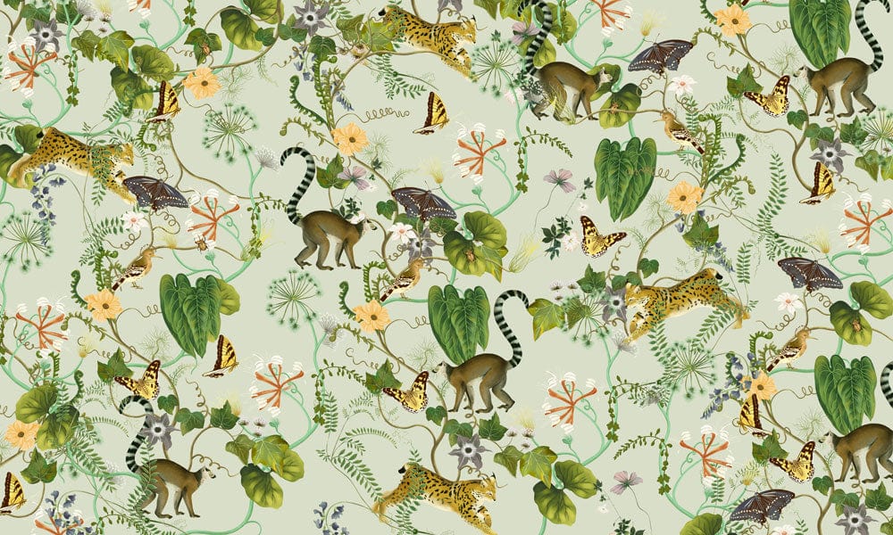 Verwandeln Sie Ihren Raum in ein tropisches Paradies mit unserem Exotic Jungle Animal Print Wallpaper. Mit einer üppigen Vielfalt an lebhaften Tieren und Pflanzen bringt diese hochwertige Tapete einen verspielten Akzent in jeden Raum und bietet gleichzeitig eine langlebige und beständige dekorative Aussage.