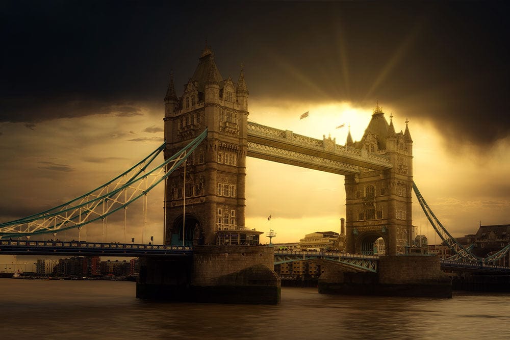 Schmücken Sie Ihre Wände mit dem fesselnden Glanz der ikonischen Tower Bridge bei Sonnenuntergang. Diese Tapete bringt einen Hauch von historischer Londoner Eleganz und die Ruhe der Dämmerung in jeden Raum und schafft eine elegante und friedliche Atmosphäre.