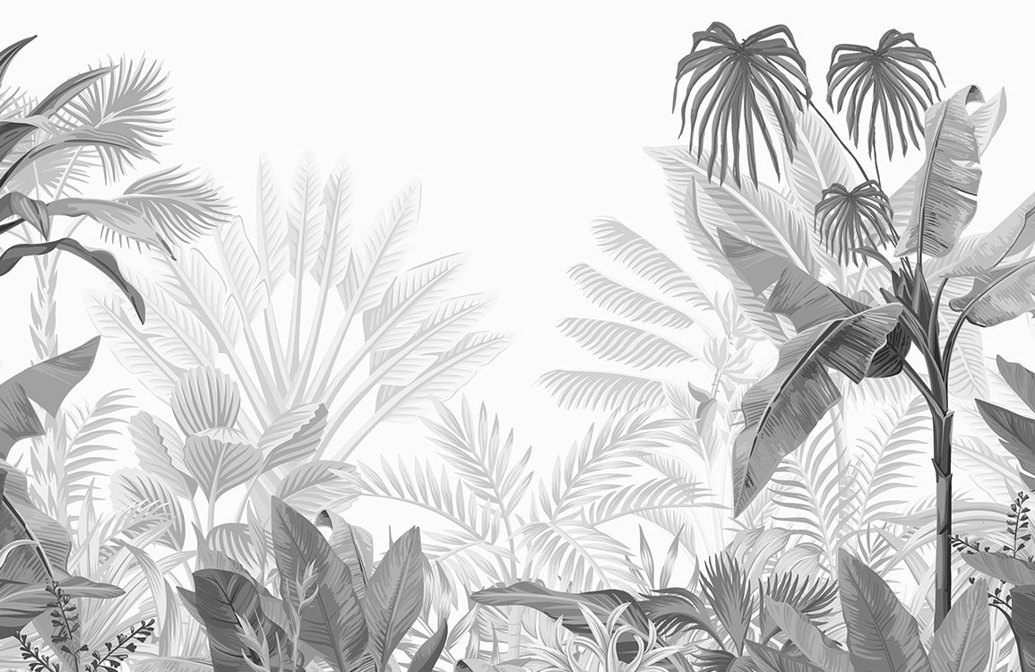 Umarmen Sie eine elegante Dschungelatmosphäre mit unserem Monochrome Tropical Botanical Wallpaper. Perfekt, um einen ruhigen, aber stilvollen Hintergrund in jedem modernen Zuhause zu schaffen. Ideal für Schlafzimmer, Wohnzimmer und Büros, in denen ein Hauch von naturinspirierter Eleganz gewünscht wird.
