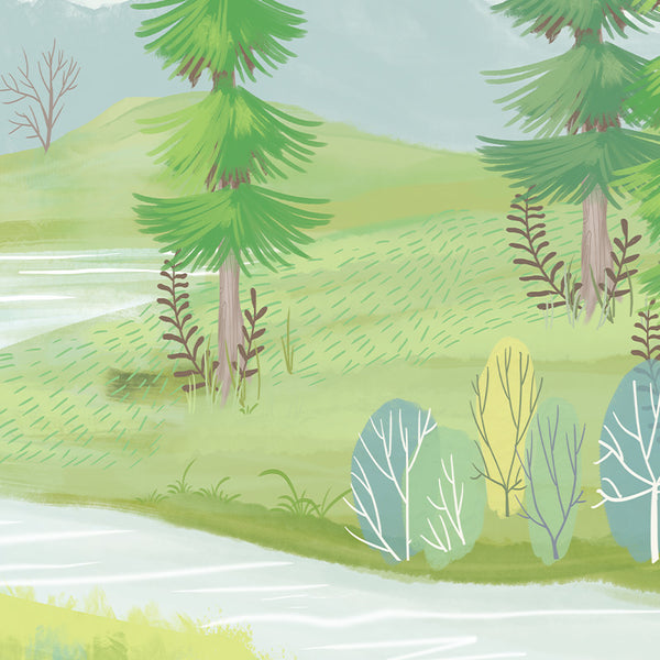 Verwandeln Sie Ihren Raum mit unserem Serene Landscape Watercolor Wall Mural, das eine friedliche Naturszene zeigt, um eine ruhige Atmosphäre zu schaffen. Perfekt, um die Schönheit der Natur in jeden Raum zu bringen, verleiht diese Tapete mit ihrem sanften Aquarellstil einen Hauch von künstlerischer Eleganz.