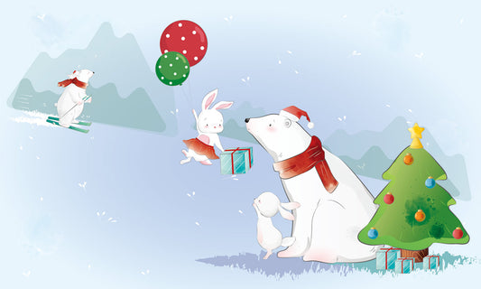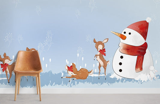 Papier Peint Panoramique Cerfs et Bonhomme de Neige