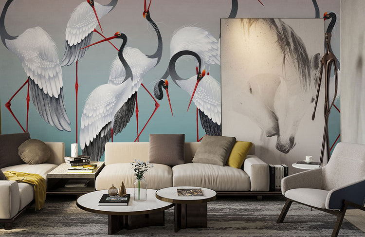 Mural Papier Peint Scène Nature Cranes Tranquilles