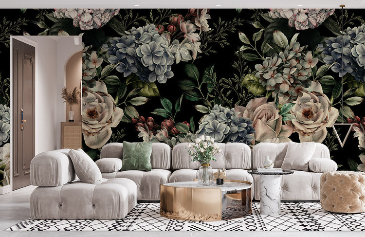 Papier Peint Panoramique Fleurs Sombres et Colorées