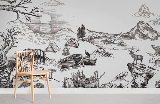 Papier Peint Panoramique Croquis de Paysage au Coucher du Soleil