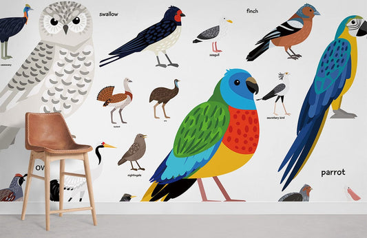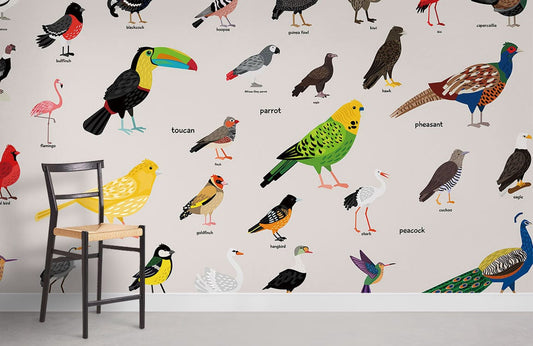 Papier Peint Panoramique Encyclopédie des Oiseaux Colorés
