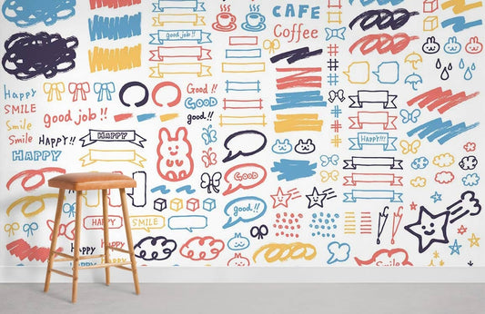Papier Peint Panoramique avec Graffitis Colorés et Mignons